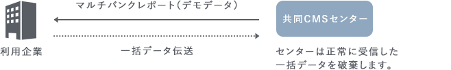 共同CMSセンターは契約金融機関からのマルチバンクデータを蓄積ファイルへ一次保存しておくセンターでありセキュリティ上、お客様のデータは見ることができなくなっています。