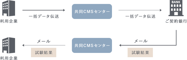 引落日の翌営業日~3営業日後に各行庫より共同CMSセンターへ結果明細が送信されます。
